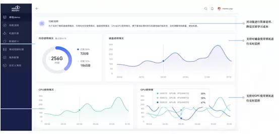 在部署方面,该私有化部署方式现支持接口调用和Web界面操作两种审核服务。在Web界面登录时,客户可以通过配置域名,直接访问内网IP,通过金山云技术团队提前配置好的账号密码登录后台即可。值得一提的是,金山云审核一体机客户可登录管理后台,对一体机内存、GPU、CPU、磁盘四部分使用情况进行实时监控等。