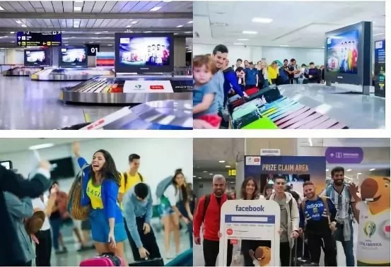 在TCL南美洲认知度不高的情况下,TCL借助美洲杯即将迎来全民瞩目的4强赛时机,在里约机场开展了一场以“打破边界”为主题的创意营销活动:将机场行李转盘涂装成“惊喜足球场”,行李掉落在传送带中奖区即视为“射门得分”,在现场所有球迷的见证下获得相应的奖品。