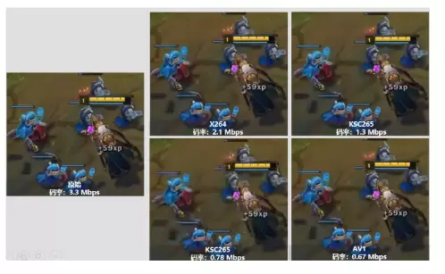 下图是目前金山AV1的转码效果。在原始3.3M码率的游戏视频下,编码器压缩至0.67M时(压缩率79.70%),H.265已经产生块效应,但AV1能保证更好的主观效果。