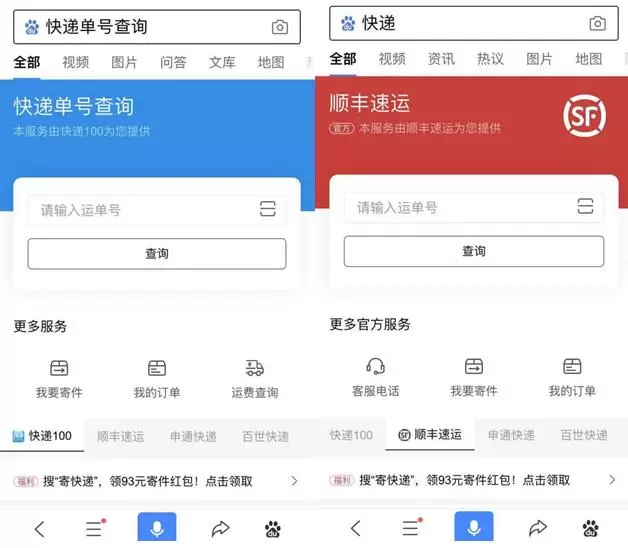 谷歌在中国的同行百度早就上线了该功能,并在此基础上更进一步。在百度,用户搜索“快递”或“快递单号查询”等关键词,不仅可以直达查询页面,查询各大快递企业的物流状态,还可以根据物体的重量和寄件地址查询详细的快递费用,下单寄件。