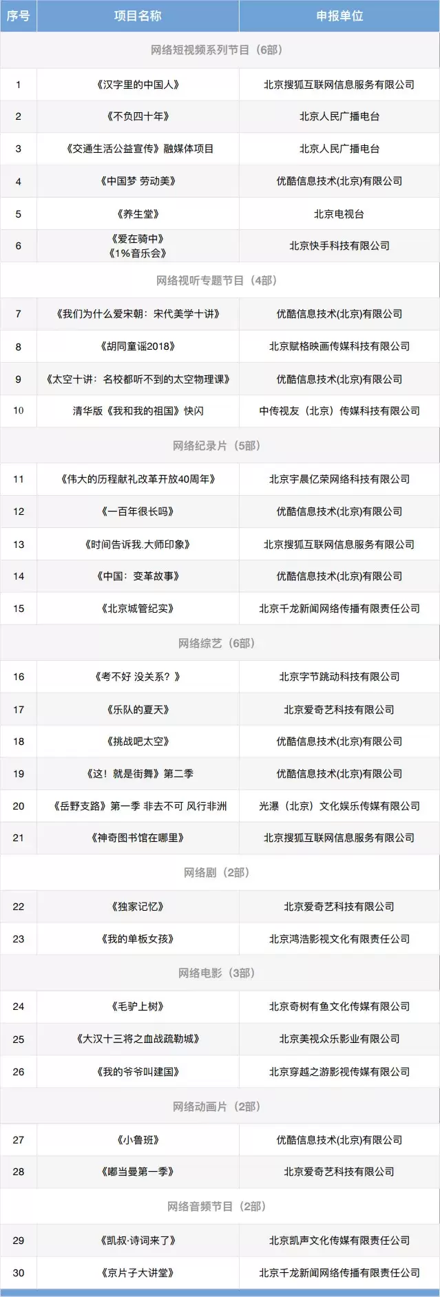 附:2019年北京广播电视网络视听发展基金优秀网络视听节目名单
