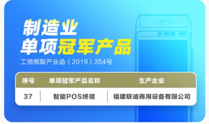 联迪商用智能POS终端入围国家级制造业单项冠军产品