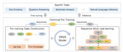 ERNIE 2.0 持续学习的语义理解框架, 支持增量引入不同角度的自定义预训练任务,通过多任务学习对模型进行训练更新,每当引入新任务时,该框架可在学习该任务的同时,不遗忘之前学到过的信息。