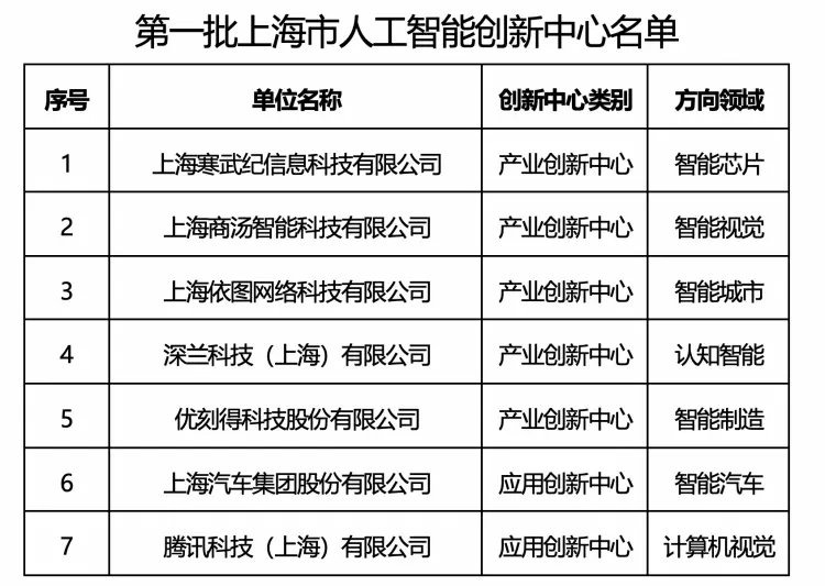 上海经信委:寒武纪等入选首批人工智能创新中心名单
