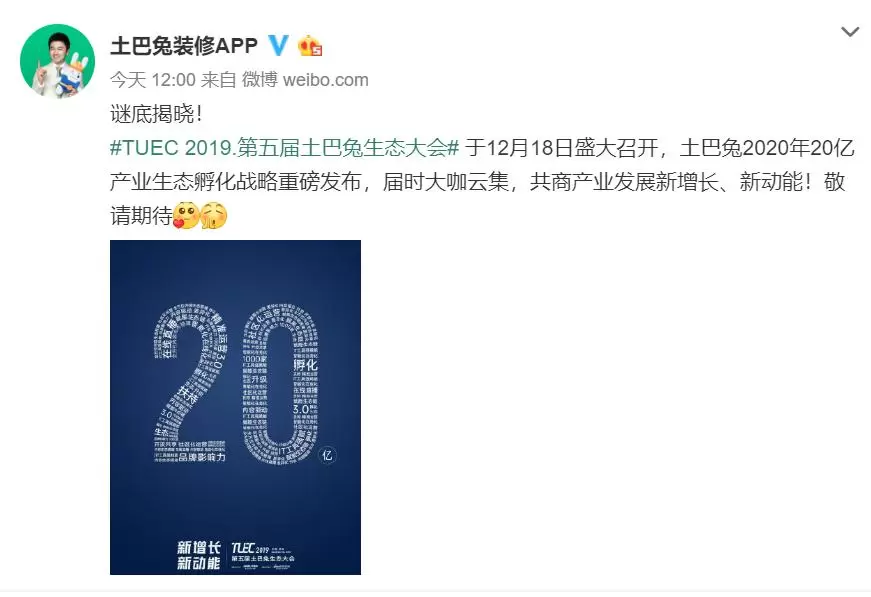 土巴兔生态大会有大动作?发布“20亿”数字海报