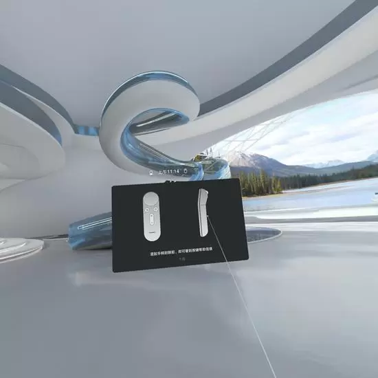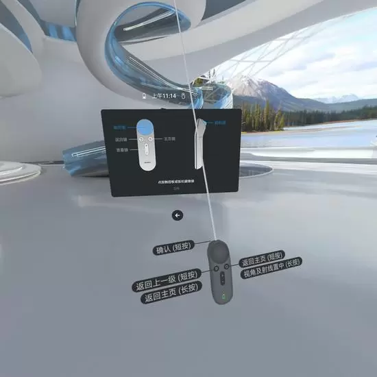 当手机连接HUAWEI VR Glass后,就进入到主界面,这时系统会对新手用户进行步骤引导。如果没有记住手柄或手机的功能按键的话,将手柄或手机与眼镜平行,就会告知用户该如何使用。
