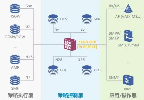 基于多年电信增值业务领域的经验,中兴通讯推出了基于云原生的ZXUN RCP(Resource Control Platform 资源控制平台)产品,实现了3GPP架构定义的PCRF(Policy and Charging Rules Function)和PCF(Policy Control Function)网元功能。其与周边网元GGSN、PGW、AMF、SMF、OCS、AF/IMS等协作处理,进行统一策略和计费控制,满足运营商对于流量精细化运营管理、VoLTE/VoNR应用、能力开放等各种数据管道应用场景的需求。