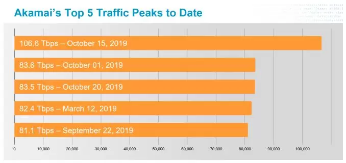 随着互联网技术的发展,网络使用量出现了前所未有的增长,2008年美国总统选举这一热点事件,首次将网络带宽的需求量提高到了Tbps数量级,而到了2019年,网络带宽的峰值已经突破106 Tbps。短短十年间,互联网的流量提升了一百多倍。基于这种剧烈的流量环境变化,Akamai也在不断演进来满足客户需求。