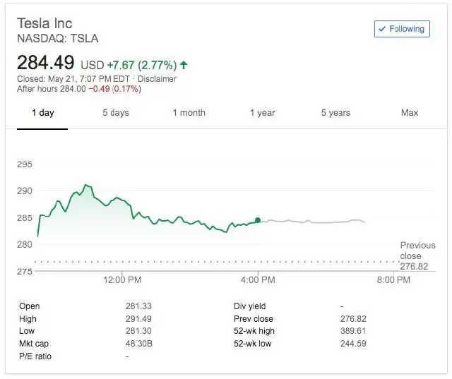 凤凰网科技讯 据MarketWatch网站北京时间5月22日报道,在特斯拉公司CEO埃隆·马斯克(Elon Musk)在推文中公布加强版Model 3,以及分析师预计Model 3将具备强大盈利能力后,特斯拉股价在周一上涨至了一个多月来的最高。