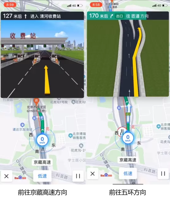 第一时间及时更新保障了用户的出行顺畅。当用户通过此路段,若前往京藏高速,百度地图的语音提示为“前方进入清河收费站,该收费站去往不同方向,只能走左侧七窗口,去往京藏高速方向”;若去往五环方向,百度地图的语音提示为“前方进入清河收费站,该收费站去往不同方向,只能走右侧两通道,去往五环方向”,以清晰的语音播报为车主朋友提供精准的指引。
