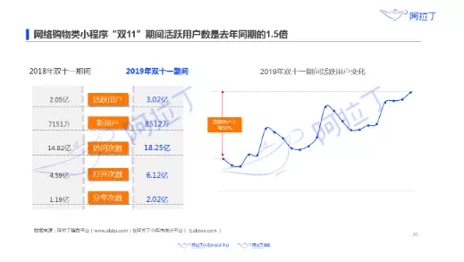 来自阿拉丁的《小程序大数据里洞察别样的“双11”》也显示,双11期间,网络购物类小程序活跃用户同比增长47%,达3.02亿。这些都表明,独立App已不再是用户获取信息和服务的唯一途径,越来越多的用户开始青睐并使用小程序。