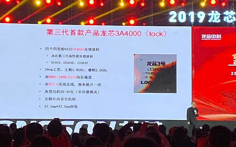 此外,龙芯4000系列还拥有片内安全机制的特点。一方面,它支持AES、MD5、SHA等算法的专门指令,片内集成安全可信模块;另一方面,它的内核支持操作系统内核栈防护机制,以及IO防护、安全执行环境等访问控制,高性能密码算法服务能力支持商密及以上算法。