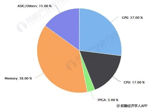 按器件种类看,依照前瞻对芯片收入规模的统计计算,计算芯片(如CPU、GPU、FPGA、ASIC)在数据处理类芯片中占比最高,其中GPU拥有27%左右的份额,CPU和ASIC市占率不相上下,分别为17%/15%。FPGA灵活度强但普及度低,在开发早期和小规模应用时优势比较明显。