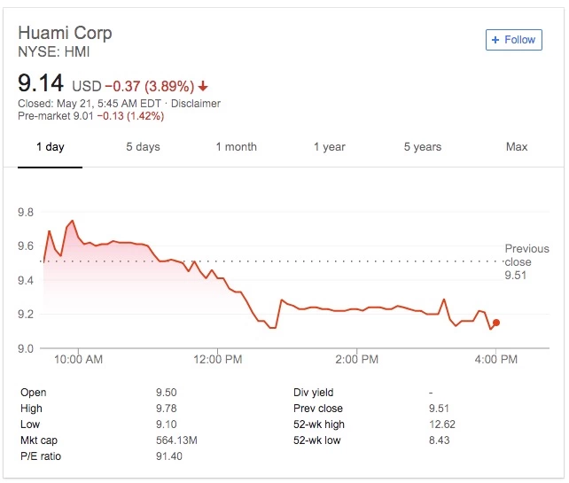 雅虎财经汇总的数据显示,华米第一季度营收超出分析师预期,但是调整后每股收益不及分析师预期,拖累股价在周一盘前交易中下跌1.42%。