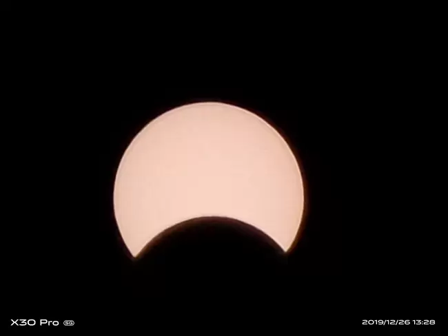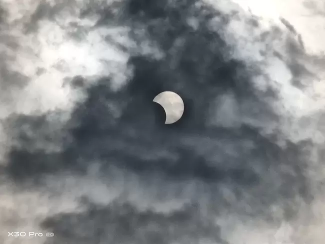 有网友用vivo刚刚发布的X30 Pro记录下了日偏食的画面,从他发出来的照片可以看到,整个日偏食的景象拍摄的非常清晰,通过变焦,日偏食几乎占满了整个画面,vivo X30 Pro的变焦能力展示的淋漓尽致。