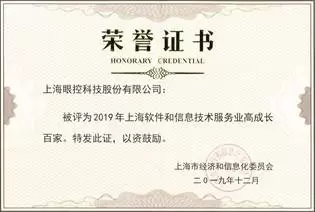 在经信委公示的“2019上海软件和信息技术服务业高成长百家”企业名单中,眼控科技凭借雄厚的研发实力、自主创新能力及突出的行业影响力荣列其中。
