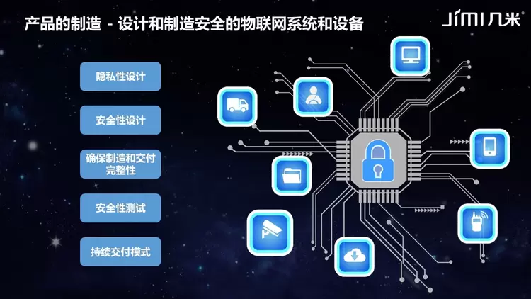 深圳市几米物联有限公司全球业务总经理戴文指出:“在设计阶段,我们会在物联网设备处理器中嵌入加密材料,并在制造处理器时在安全注册中心中识别处理器。在设备制造阶段,我们会在物联网设备中安装处理器,随后我们会在一个安全注册中心中注册这些设备。而在用户部署阶段,我们能够激活这些设备。通过安全注册中心,当设备处于非活动状态或停止使用时,我们可以移除该设备。”