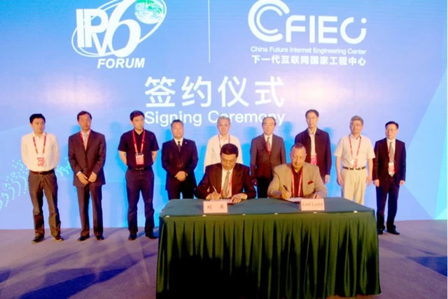 图:全球IPv6论坛与下一代互联网国家工程中心签约仪式
