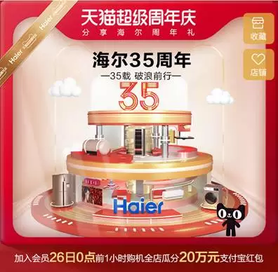 12月26日,海尔迎来了35周年,进入了生态品牌战略新阶段。在移动端,全新的智慧平台海尔智家APP第一时间亮相,开启了首场长达12小时的沉浸式场景直播。作为海尔的生态伙伴,天猫也同步传来了捷报,海尔携手天猫打造的“超级周年庆”活动开场不到14个小时销售额便突破了1亿大关,预估截至活动结束,将创造海尔在天猫平台品牌营销活动新纪录!