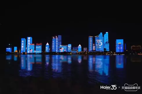 实际上,在不少中国消费者心目中,海尔已经成了一种成长的陪伴,融入到生活的点点滴滴。如今,海尔也迎来了自己的35岁生日。活动期间,在手机淘宝搜索“35岁的你”,就会发现一幅名为“海尔路1号”的长卷故事,展示了海尔35年来的创业“心路”。这个走心的彩蛋赢得了众多用户的点赞和祝愿。微博上,#今天我们都是海尔兄弟#话题登上热搜,阅读量突破1个亿。包括天猫在内的生态伙伴,通过官微与海尔互动庆祝。26日当晚,海尔联合天猫在青岛海滨点亮53栋楼体连屏,以一场超级灯光秀将周年庆活动引向高潮。