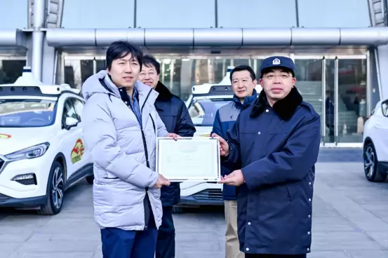 (百度副总裁兼总编辑张东晨代表百度接受北京首批自动驾驶车辆道路载人测试通知书)