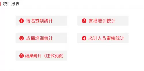 新开发的培训系统可以根据培训组织者需求,通过数据统计报表功能模块,实现完整的数据输出。