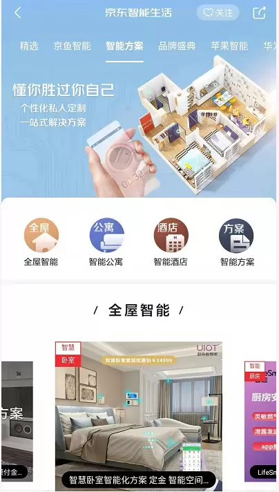 智能频道为综合性频道,智能产品品类品牌全,智能解决方案多。涵盖智能家居、智能酒店、智能办公等场景,用户可一站式获取与自身需求最匹配的商品组合。