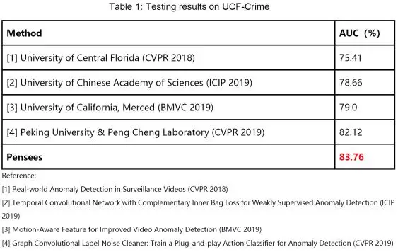 12月,澎思科技异常行为检测技术刷新中佛罗里达大学犯罪数据集(UCF-Crime)和上海科技大学校园数据集(ShanghaiTech Campus)世界记录。