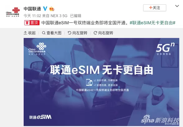 中国联通官宣:eSIM一号双终端业务即将全国开通
