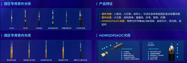 全系列园区专用室外光缆如室外铠装光缆、阻燃光缆、生物防护光缆、雨水管道光缆、开槽浅埋光缆及气吹微缆等可应对架空、直埋、管道等多种复杂的应用场景。光缆直径小,芯数大,体积小,相比传统光缆可提升15%布线空间利用率。
