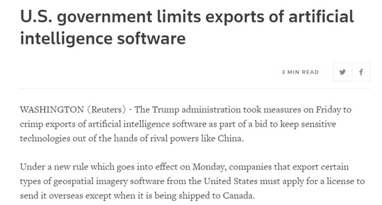 据悉,限制这类人工智能软件的出口,是美国防止敏感技术被对手国家掌握的手段之一。