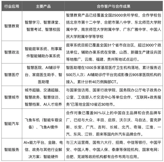 在B端行业人工智能应用中,科大讯飞在教育、智慧城市、政法、医疗、汽车等领域都有所布局,其中智慧教育、智慧政法、智慧医疗是科大讯飞的核心行业布局领域。