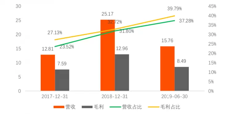 从整个To C业务的营收来看,科大讯飞的C端业务正在持续发力。2019年上半年,科大讯飞To C业务实现营业收入15.76亿,同比增长45.45%,实现毛利8.49亿,同比增长41.92%,在整体营收中比重和在总毛利中比重持续上升,分别达到37.28%、39.79%。