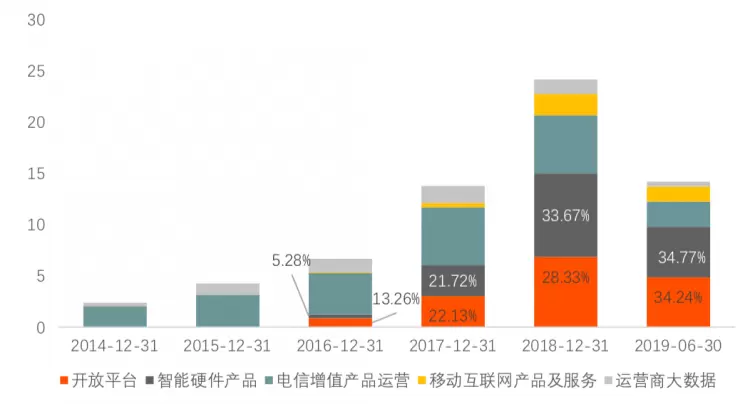 图2-6:2015年-2019年上半年科大讯飞B端各大板块营收情况(单位:亿元)