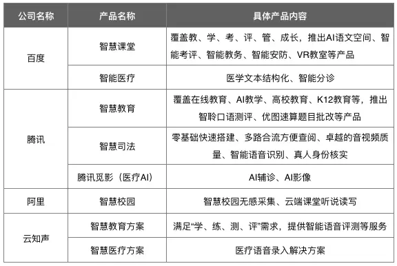 表2-3:教育、医疗、政法领域其他公司提供的产品或解决方案