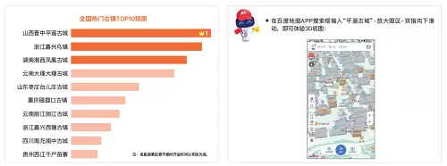 近年来,拥有悠久历史和文化韵味的古镇备受游客青睐。位于山西晋中的平遥古城是中国现存最完整的古代县城,也是《报告》预测的春节期间最热门的旅游古镇。古镇建筑群往往面积广阔,很难一览全貌,但是有了百度地图,这个问题就迎刃而解啦。只要在百度地图APP搜索框中输入“平遥古城”,放大园区即可看到3D底图,平遥古城的全貌瞬间展现在眼前。