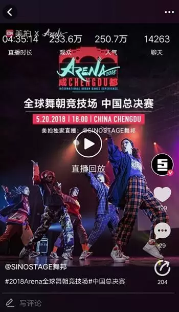 时隔一年,中国顶尖舞团Hello Dance用热血街舞和历史故事的创意编排,再次赢得了美拍Arena2018年度齐舞大赛冠军荣誉称号。5月20日,Arena2018在中国成都完美落幕,美拍作为独家战略合作平台全程直播。这场聚集了世界顶级街舞团队的文化潮流赛事,吸引了来自亚洲四国的12支顶尖团队、世界史诗级街舞大师的登台演出,为现场观众和233.6万美拍网友献上一场视觉上的饕餮盛宴。