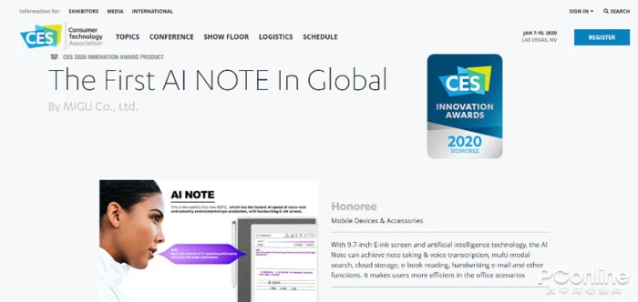 出道即C位!咪咕公司与科大讯飞的联合新品智能笔记本获CES2020创新大奖