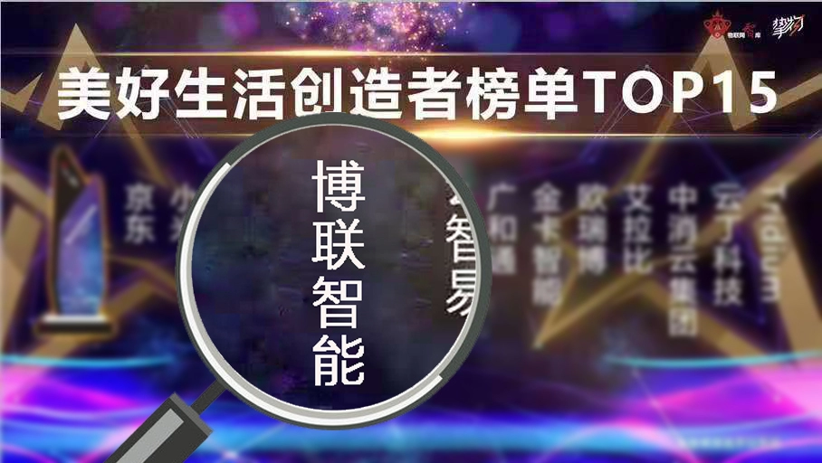 AIoT产业领袖榜单(2019-2020)由物联网智库和挚物·AIoT产业研究院共同发起。旨在挖掘真正有潜力、有魄力、有战略眼力和实践能力的物联网领袖企业和新秀企业。此次博联智能荣登“美好生活创造者榜单Top15”,是对博联在AIoT领域的技术实力和落地服务能力的认可。