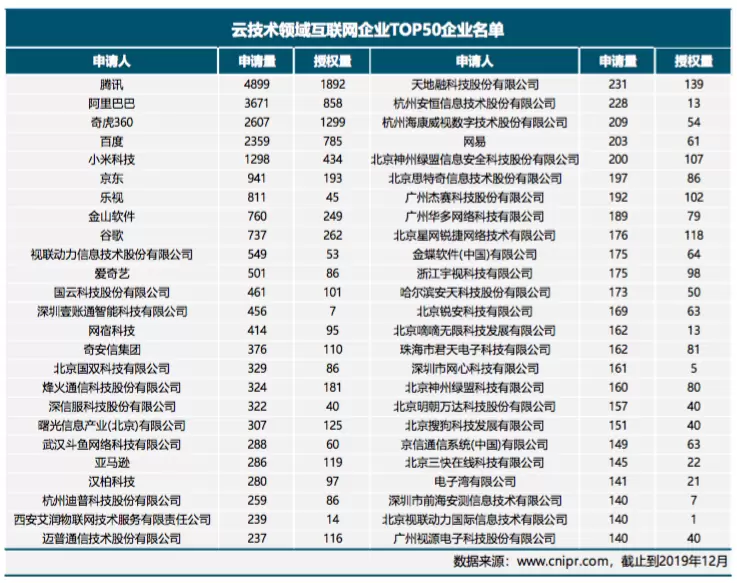 - 云技术专利排名:腾讯阿里360位居前三,烽火上榜