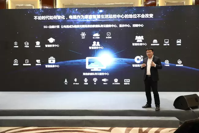 王伟表示,2020年,海信将致力于将打造更好的海信视像。5G+边缘计算将把我们带入一个全新的场景应用时代,让电视成为链接无限场景的家庭私有云服务中心、显示中心和控制中心。我们通过全面运用最新的AI交互技术(语音、触控、图像、蓝牙、WIFI6、5G、PLC等),为用户提供全场景AI服务。比如只需用语音向电视下达控制温度的指令,即可调节空调温度,对电视说“帮我洗衣服”,就会自动控制洗衣机。还有远程医疗、远程教育,电视自助管理家庭健康档案等。