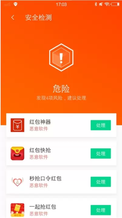 (图:腾讯手机管家查杀4款抢红包恶意软件)