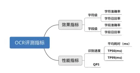 对于评测的关键指标,《研究报告》将其划分为“效果指标”和“性能指标”两类。例如,针对身份证、行驶证等字段准确率要求高的场景,主要看字段级的效果指标,针对通用文字、行业文档等场景,主要看字符级的效果指标。