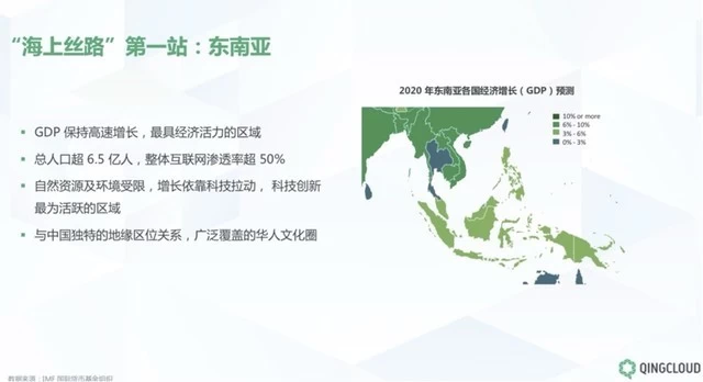 作为东南亚地区重要成员国之一,印度尼西亚同样是“一带一路”倡议中“21世纪海上丝绸之路”的重要沿线国家。如今,拥有2.7亿人口规模的印尼正迎来消费需求拉动的经济快速增长红利,GDP增速持续保持在5%-6%,互联网用户突破1.5亿,渗透率超过64.8%,大雅加达地区人口预计在10年后达到3650万,将超越东京成为全球第一大城市。“当前,‘一带一路’的沿线国家都在拥抱数字经济,有强烈的IT需求,是很大的增量市场。我们响应国家的倡议,向‘一带一路’的沿线国家输出青云的全维云能力。”青云QingCloud运营副总裁林源表示。