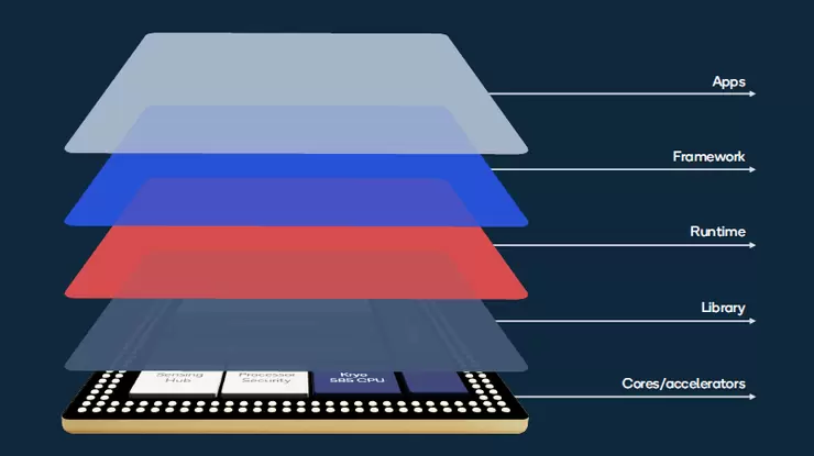 在Runtime层,为了支持移动终端上的AI性能,高通在全球率先推出面向移动平台的AI软件工具包。高通神经处理SDK与Android Neural Networks API的协作可为骁龙移动平台上第一方和第三方应用提供非并行开发者访问,将AI硬件和软件更好地结合在一起。