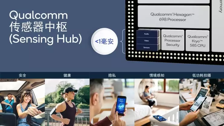 还需一提的是,为了进一步提升手机处理器的智能化程度,骁龙865还集成了传感器中枢(Sensing Hub),可以用作音频、视频的实时感知。在功耗控制方面,这个传感器中枢的多关键词语言语音唤醒功耗小于1毫安,配合AI Engine可以在极低的功耗下让手机能够感知周围的环境。