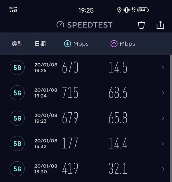 有着充足技术支持的vivo X30 Pro会有着怎么样的5G使用体验,我们直接来进行实际测试一番,首先是理论上的速度测试,我们选择在不同时段与不同地点进行Speedtest速度测试。鉴于目前5G网络的部署情况还不够完善,因此不同地点的测试速度差距比较明显,即使是在相同的测试地点,也存在比较明显的速度波动。但从速度上来看,vivo X30 Pro的5G网络速度还是比4G有明显的优势,甚至其网络速度比起普通的家庭光纤宽带还要快。