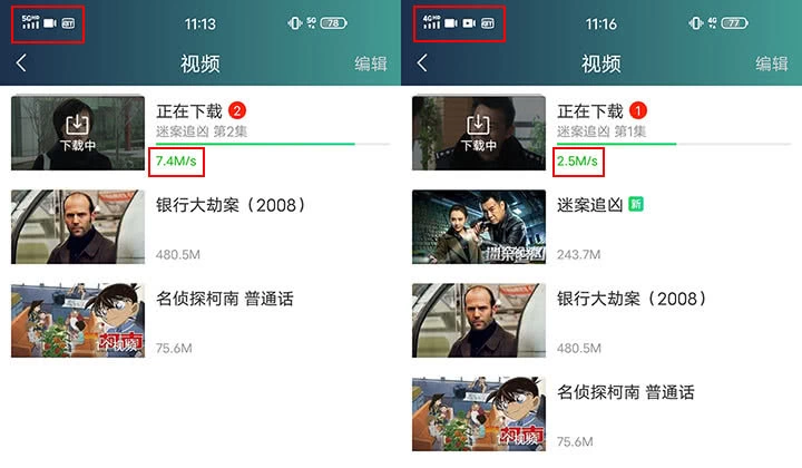 接下来我们来看5G与4G相比,究竟有着多大的差距。这里我们选用流量缓存视频来进行测试,测试地点的5G信号覆盖情况并不太好,因此更能代表实际使用中的真实情况。我们使用vivo X30 Pro分别在5G网络与4G网络中缓存1集电视剧,其中5G网络耗时81秒完成下载,4G网络则耗时142秒完成下载。需要说明的是,在我们的测试地点中,5G覆盖还并不完美,如果在开阔地中进行测试,5G速度表现会更为出色,与4G网络的差距会更为明显。