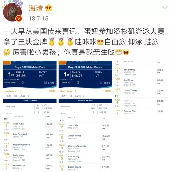 通过海清的微博发现,她13岁的儿子蛋妞(丹尼尔谐音)学习成绩非常好,还获得过诗歌类写作一等奖和游泳锦标赛金牌,可谓是文武双全!不过对于孩子的作业辅导难题,海清曾经跟许多家长一样也有过困惑期。