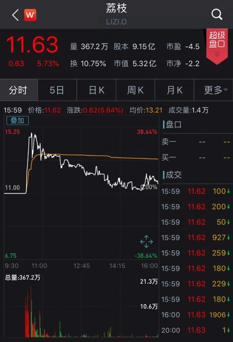 上市首日,荔枝盘中一度上涨近40%。截至收盘报11.63美元/股,上涨5.73%,总市值5.32亿美元。